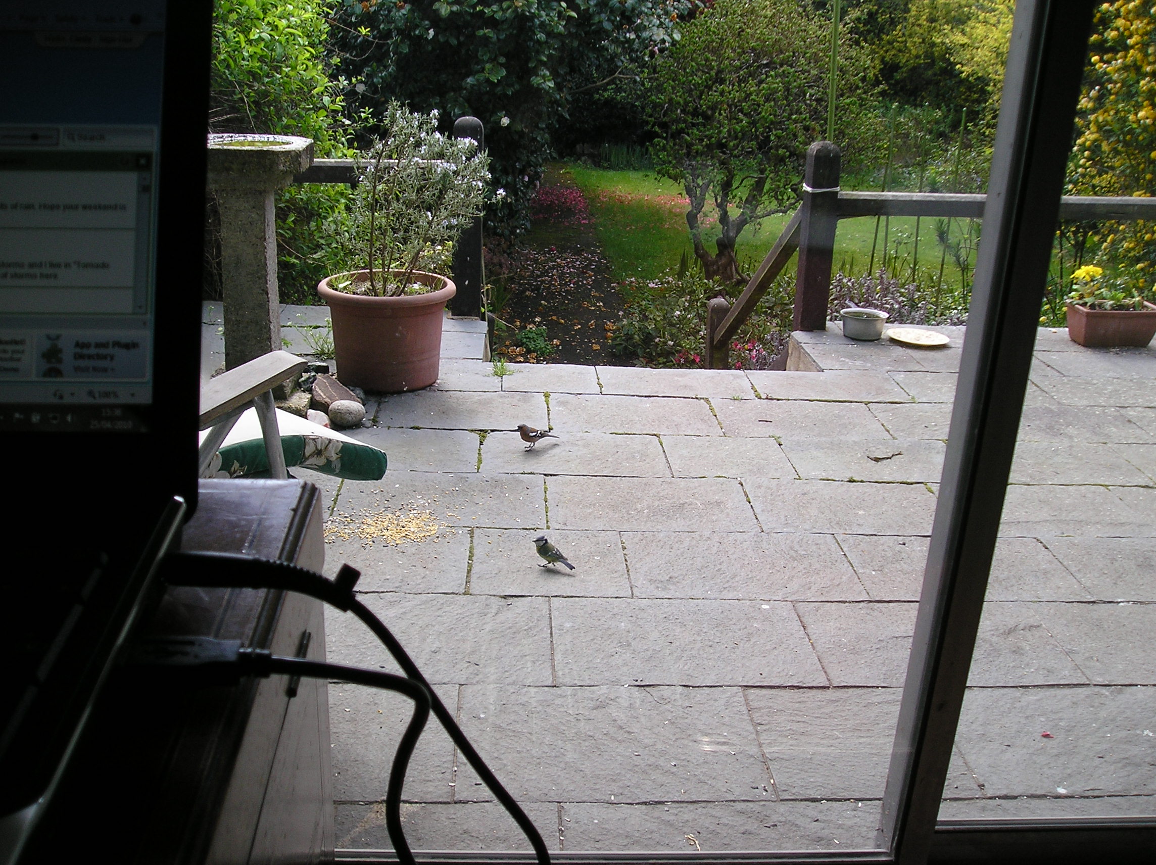 a blue-tit and chaffinch on the verandah....view from my desk