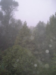 And am I glad I did. Still darkish out, the day is surprisingly warm, albeit shrouded in mist. The trees at the end of the garden barely discernable, dripping with morning dew were ghostly in their shroud of grey.
