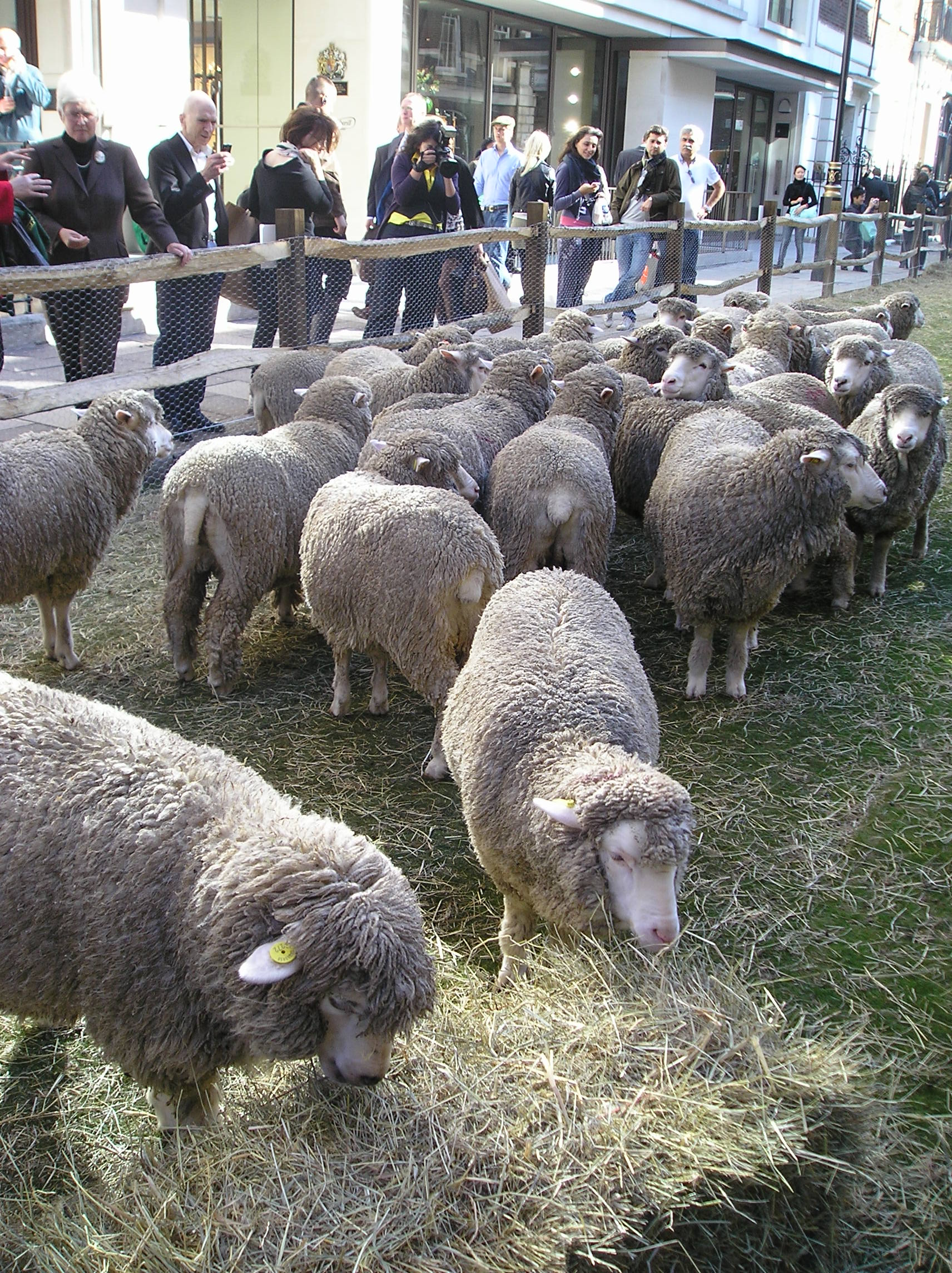 Where is the world would you find a field of sheep, grazing along an ‘upper’ class street in the middle of a bustling major city? London has to be top of the list for ‘crazy out-of-this-world things to see in the City’, city! Yesterday was no exception and what fun it was to see a herd of sheep, not quite dotted about the landscape but rather huddled together in the corner, in the middle of one of the most upmarket streets in Mayfair: Savile Row in London.