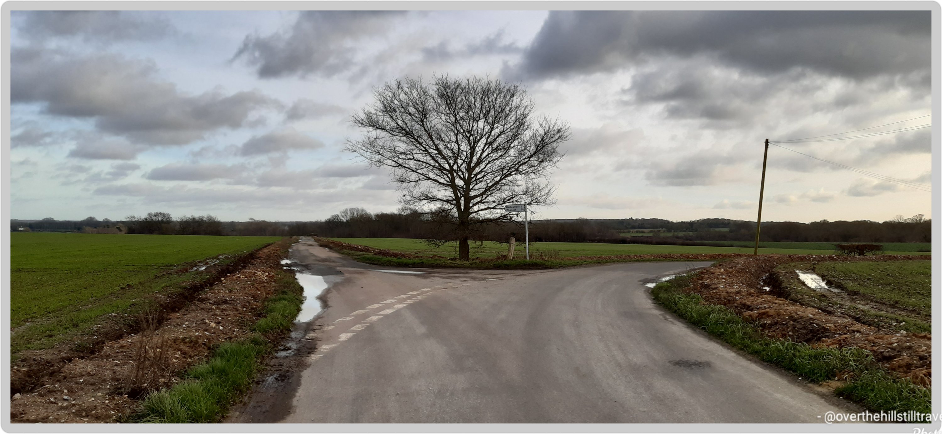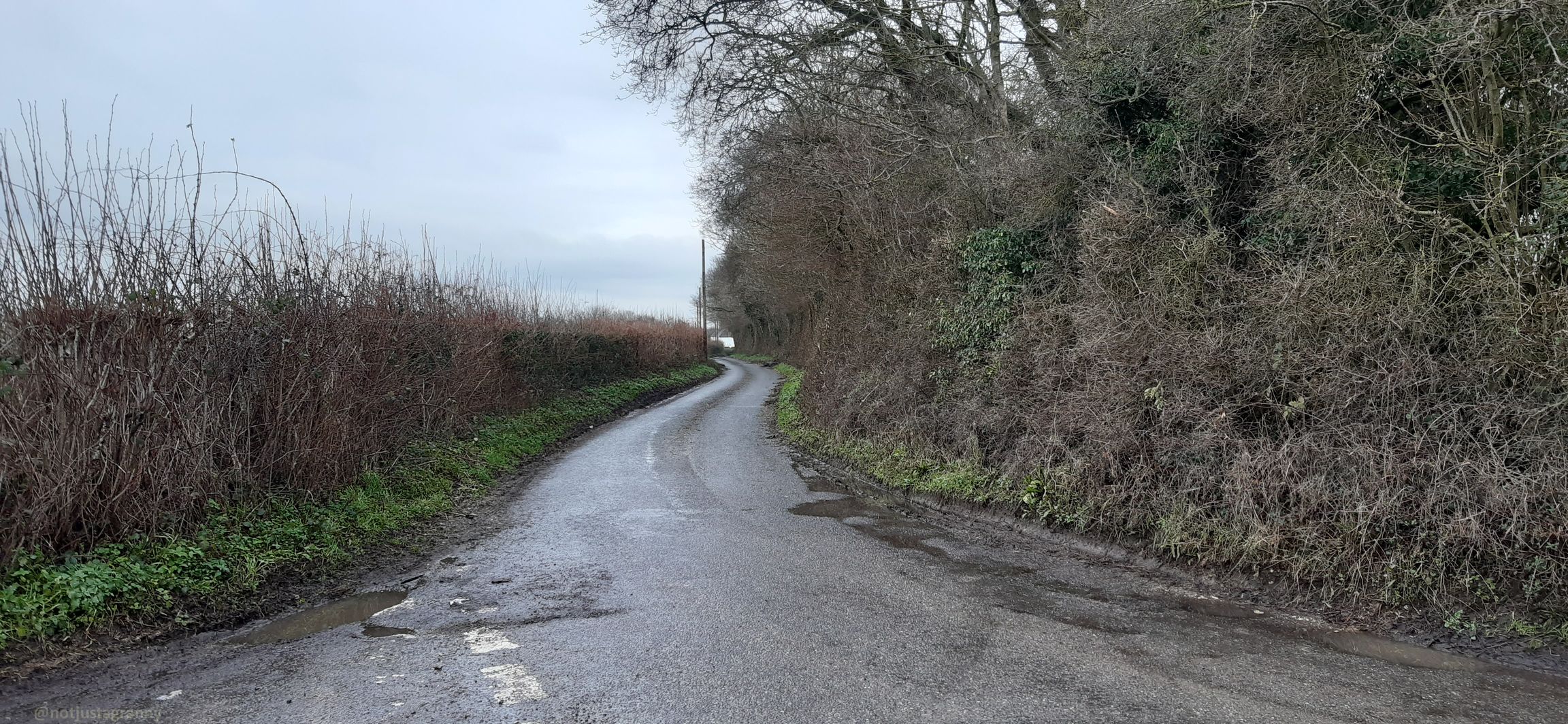 As for the scenery, beyond the few scattered hamlets, it’s mostly wet, muddy, grey/brown farm fields with a few copses of trees dotting the landscape. But I have enjoyed stretching my legs and hearing nothing but birdsong and the baaing of sheep, encountering minimal traffic as I go…..on Friday I walked for 70 minutes before encountering a car, and that was well timed (not really) – I was 2 thirds of the way around a huge puddle of the water that covered the road from one side to the other, making my way gingerly along the verges, hanging onto barbed wire fencing and precariously positioned wooden posts, when I heard the sound of an approaching car. 😱😱😱 wtf, you’re kidding me!!!