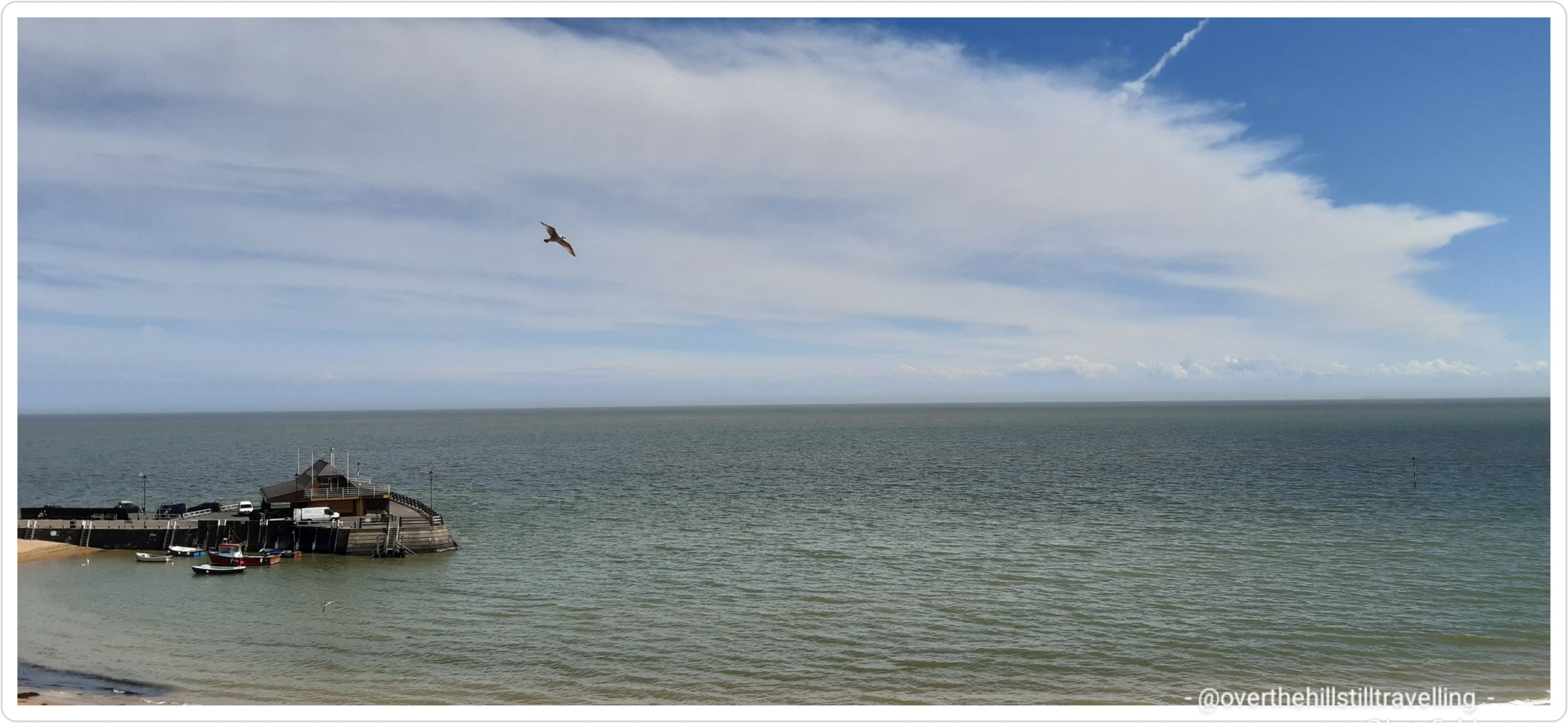 A new bench has been added on the cliffs near Dumpton Gap – a sad little memorial Broadstairs Beach Raided by the Vikings Viking Bay Milky white from the chalk Which country am I in??The tide was receding, so I pushed through from Dumpton GapLooking back from the promenade at Ramsgate A fishing boat returns to harbour trailing a swarm of seagulls