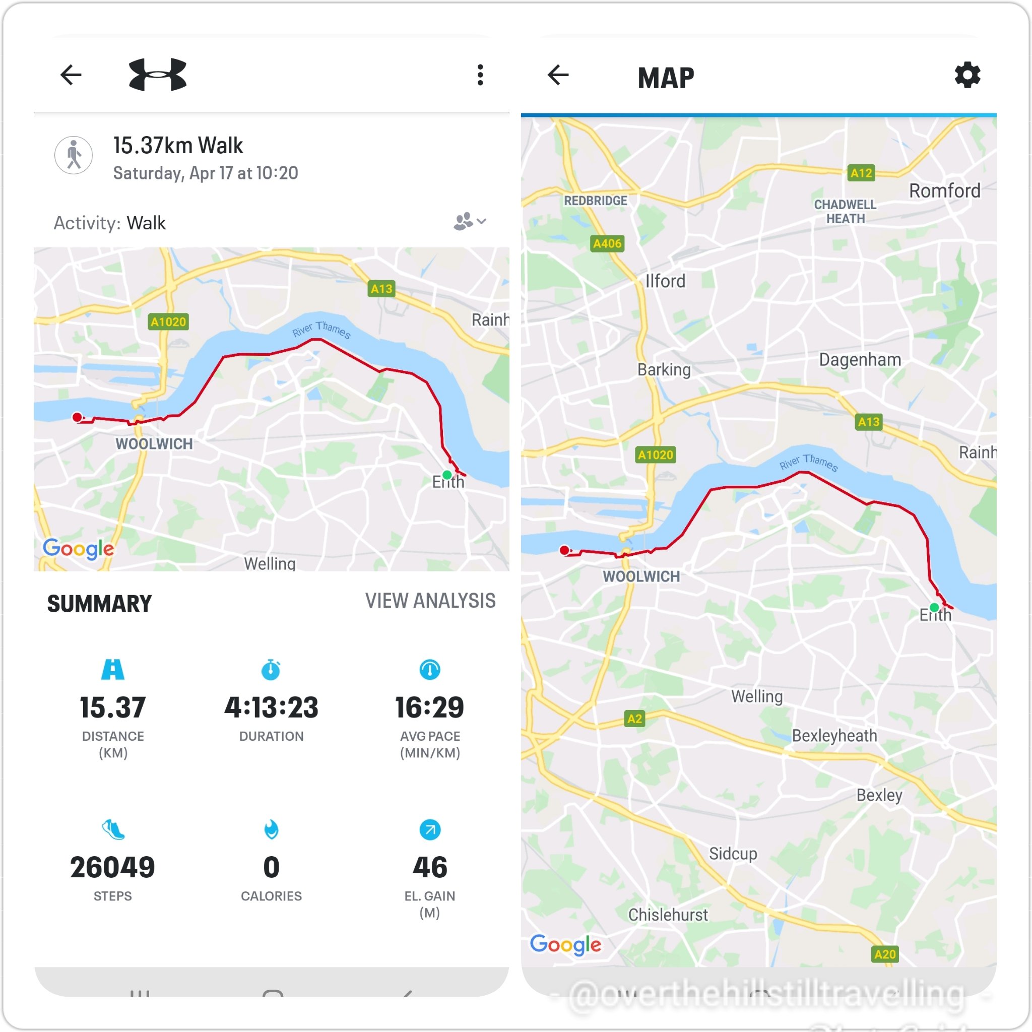 Stage 2 : Greenwich to Battersea Park 18.04.2021 – 24.51 kms – 6 hours 20 min – 38,376 steps – elevation 102 meters