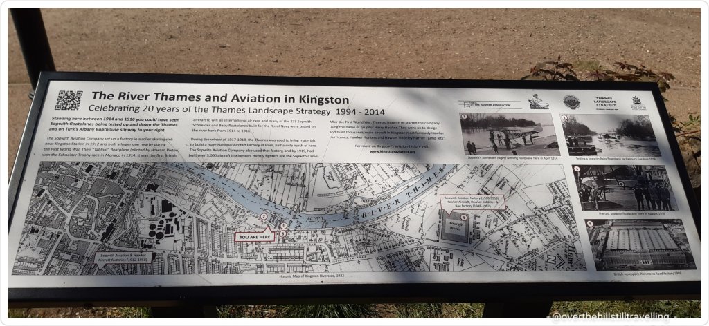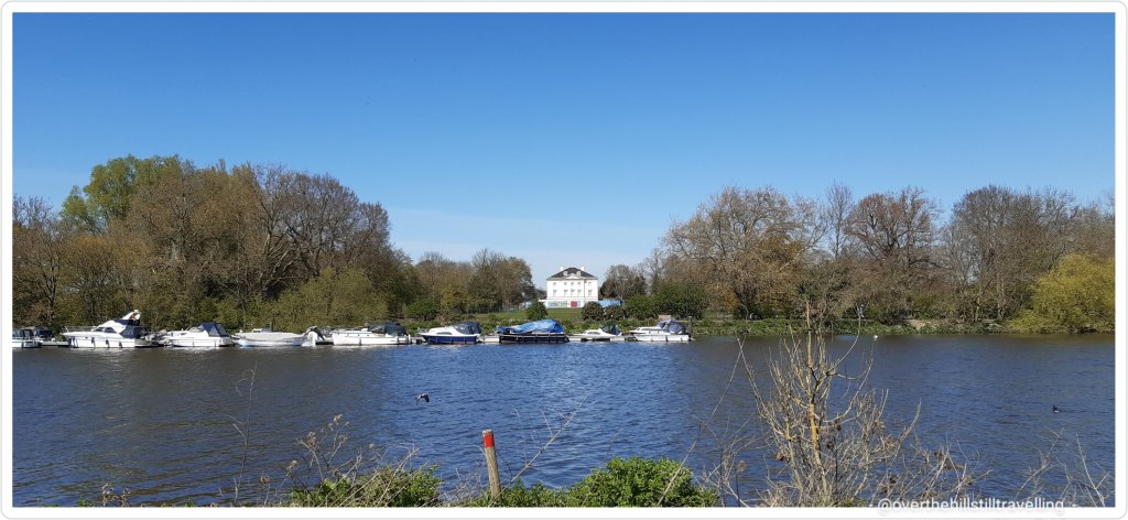 At the next Thames Path direction marker, I could see Garrick’s Temple to Shakespeare across the river. I worked in Hampton once some years ago, so had the pleasure of visiting that little park on one of my many walks. Nearby is Garrick’s Villa where he lived : David Garrick became the lessee in 1754 and then bought the property in October that year, making it his country retreat and a place of recreation where he and his wife frequently entertained their friends. He embarked on extensive alterations inside the house and, either now or at a later stage, employed Robert Adam to re-design the facade in the classical style then in vogue. The house has a fascinating history if you’d like to learn more.