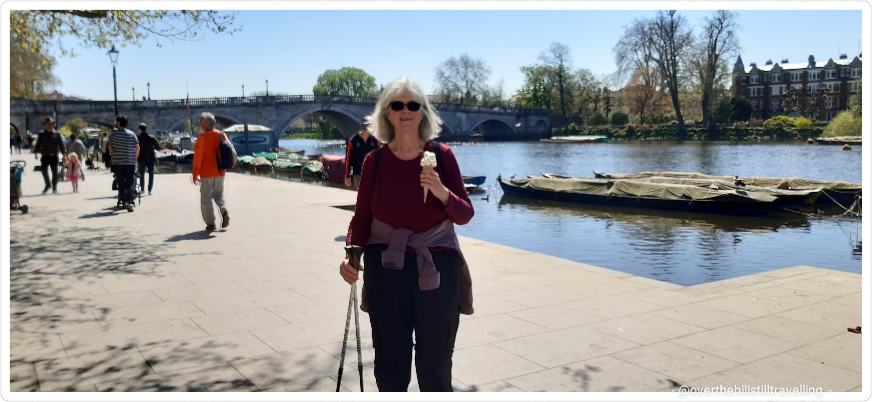 This day I had planned in celebration of my birthday. We used to live in St Margarets near Richmond and as with the previous stage, I often walked along sections of the Thames Path at different times; and in every season, including in the snow from Twickenham Bridge to Kew… 🙂 I also wanted to reach Hampton Court Palace on my birthday because it is my absolute favourite palace in the world and although I wouldn’t have time to actually visit, just walking past would make me happy. It was a belting hot day, so I had 2 ice-creams on the way…one in Richmond as I started and one in Hampton Court as I finished. Just because. My daughter had given me £5 to buy a tea and cake along the way, but I felt ice-creams were more appropriate…also I could eat and walk!