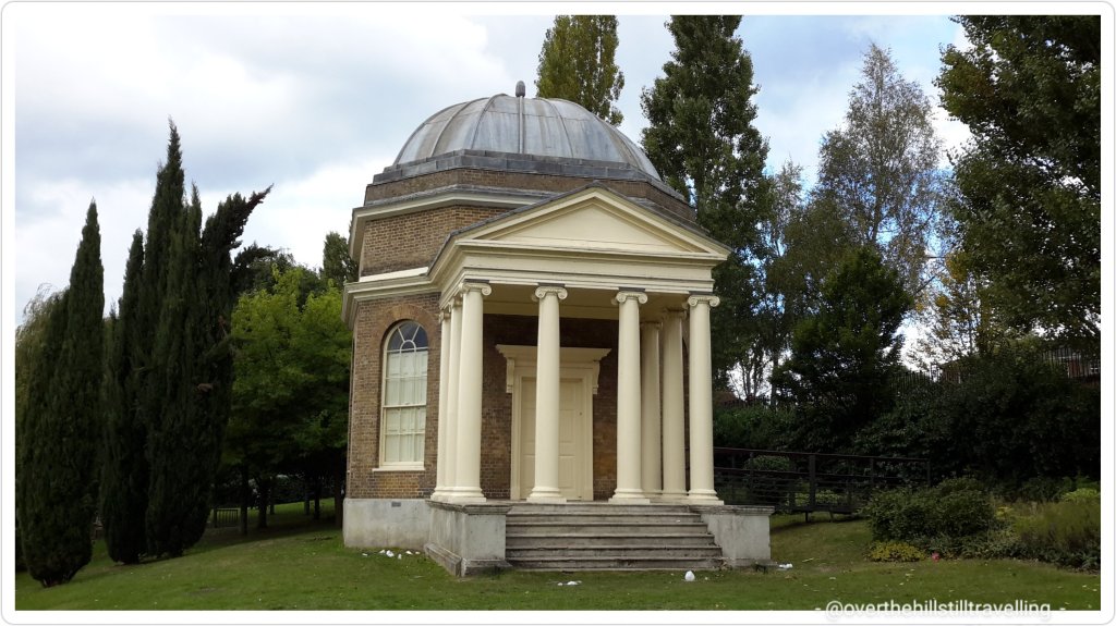 Then I was crossing the Greenwich Meridian line that runs across through the Old Deer Park (a fragment of the land connected to Richmond Palace, named from the hunting park created by James I in 1604) and marked with a metallic strip across the path so you don’t miss it. The King’s Observatory, located in the Old Deer Park, Richmond Surrey, was commissioned in 1769 by King George III, a keen amateur astronomer. The Observatory cupola, housing its telescope, is now the oldest of its type in the world.